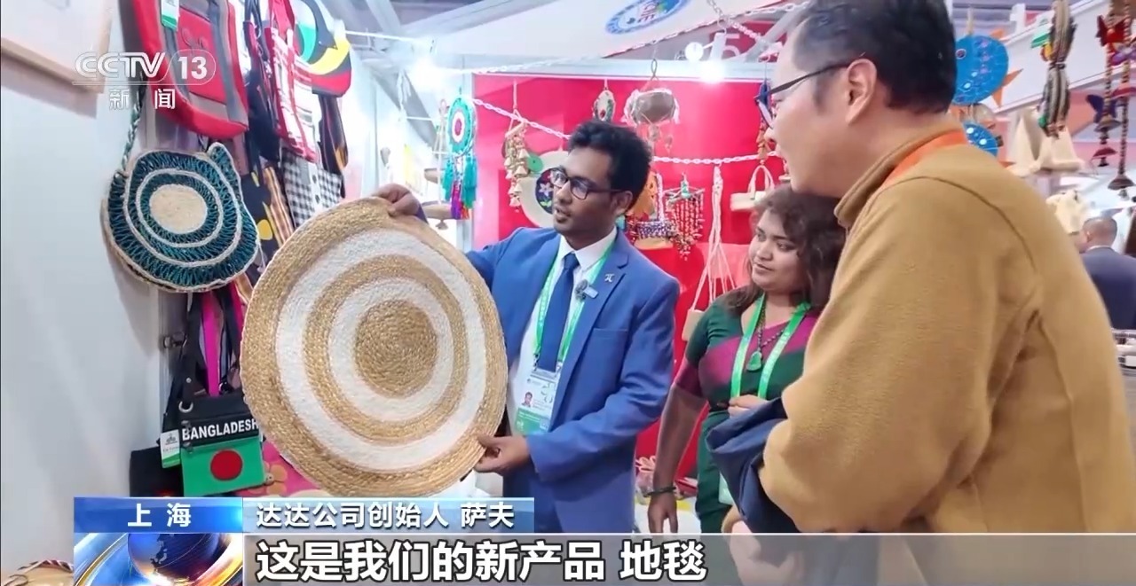 来自孟加拉国的Sav和Tanghhe夫妇是进博会的“全日制学生”。他们把家乡的黄麻工艺品带到了进博会的国际舞台。八年来,她们不仅将产品销往世界各地,还改善了家乡许多贫困妇女的生活。
