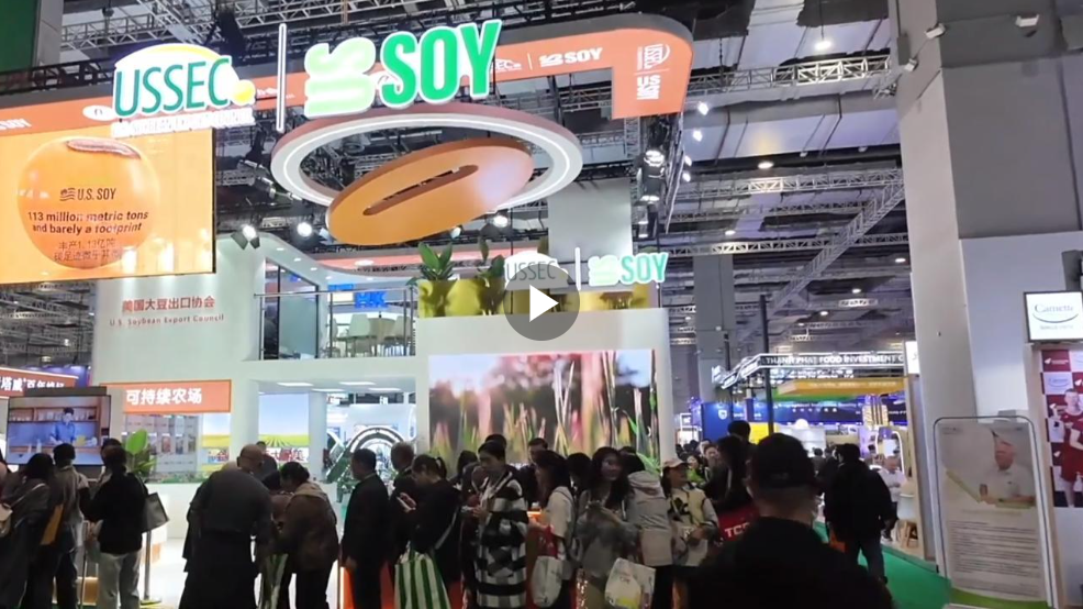 我们来到了美国展位。大豆出口协会来寻找答案。
